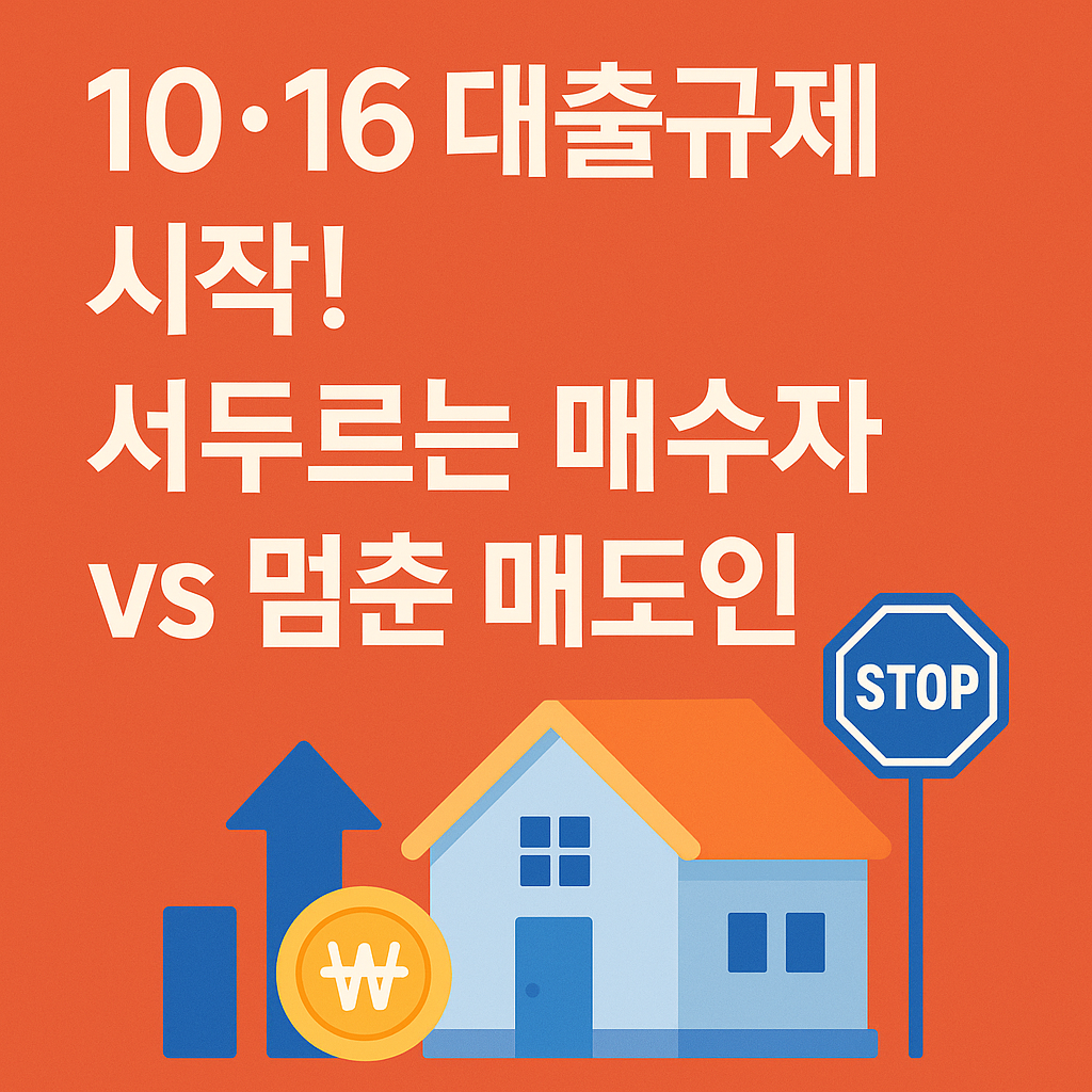 2025년 10월 16일, 정부가 예고한 주택담보대출(주담대)·전세대출 규제 강화가 본격 시행됩니다. 이로 인해 부동산 시장이 다시 요동치고 있습니다. 매수자는 서둘러 계약을 진행하고, 반대로 매도인은 규제가 풀릴 때를 기다리며 거래를 보류하는 등 시장 심리가 극단적으로 엇갈리고 있습니다. 이번 글에서는 10·16 대출 규제의 핵심 내용과 매수·매도자별 대응 전략을 상세히 정리했습니다.