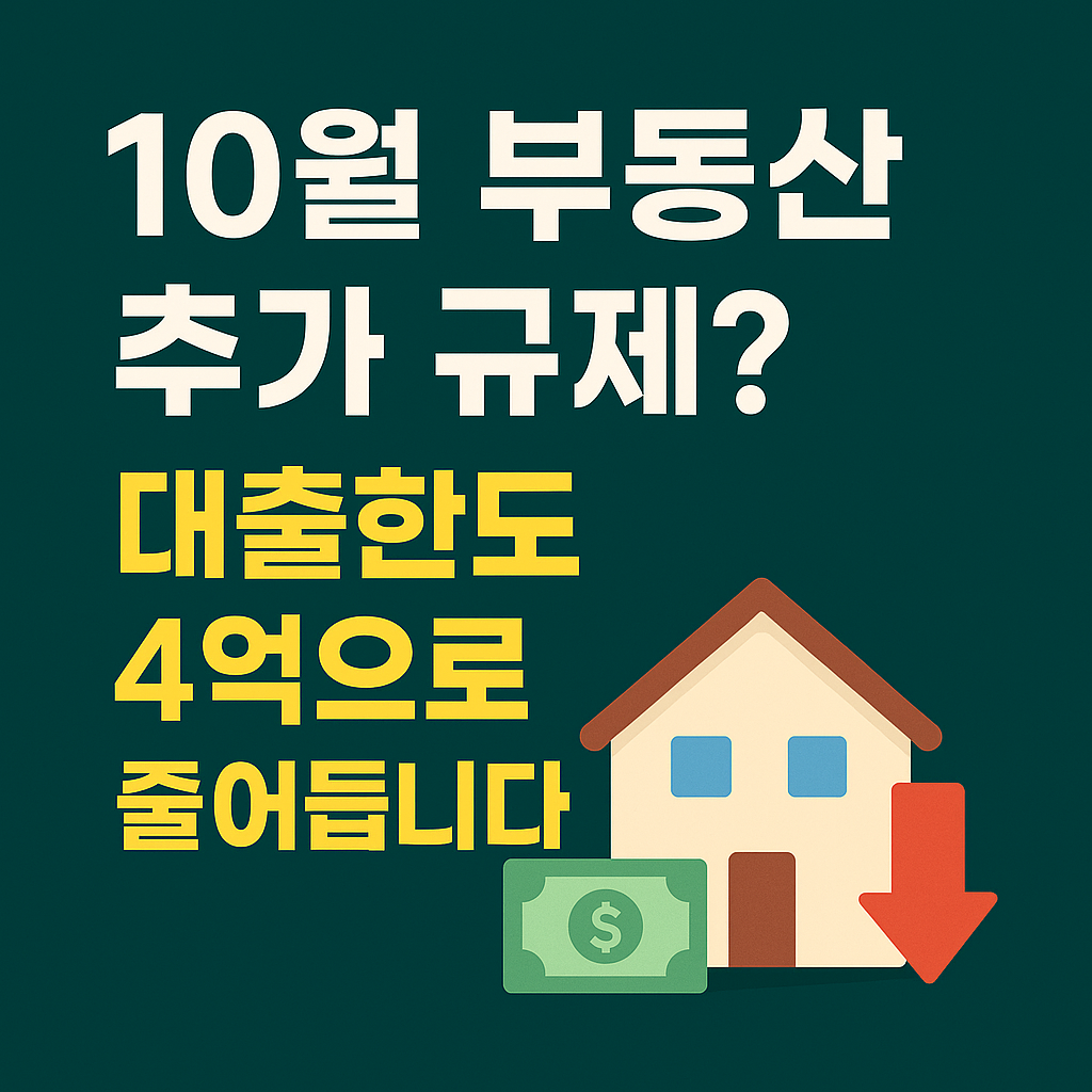 현재로선 10월 안에 추가 부동산 규제 대책 발표 가능성이 매우 높아 보입니다. 대출 한도 4억, DSR 강화, LTV 축소, 투기과열지구 확대 등의 카드는 이미 언론을 통해 여럿 언급되고 있으며, 이는 시장 전반에 큰 파장을 줄 수밖에 없습니다