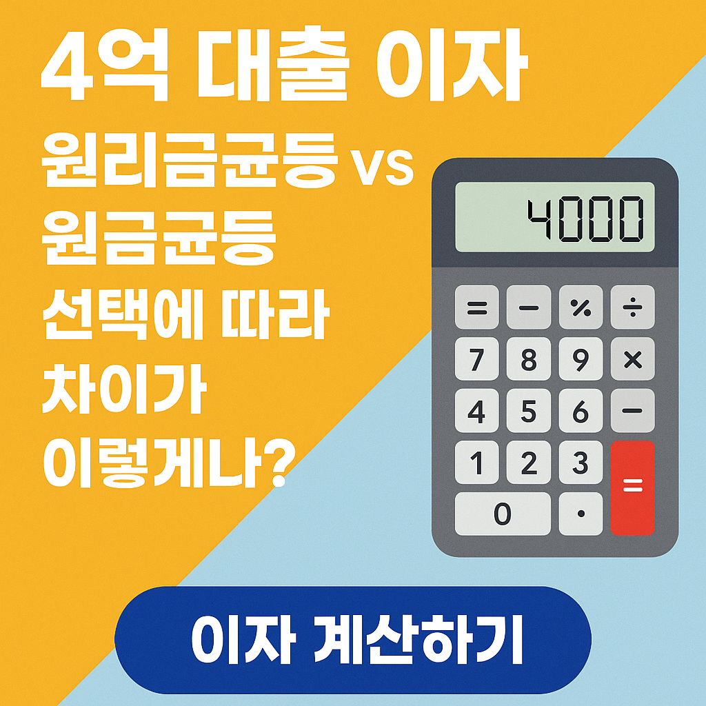 4억 대출 이자 원리금균등 vs 원금균등 선택에 따라 차이가 이렇게나